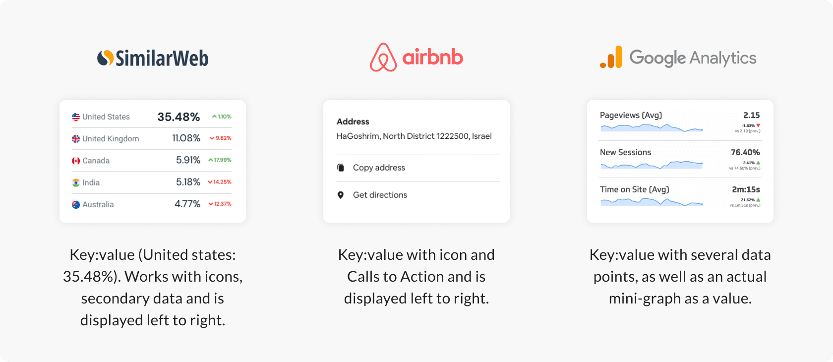 Here is a small taste of some of the feature-specific research: Key-value components. In their nature they have to be extremely flexible and work well with any other type of content.