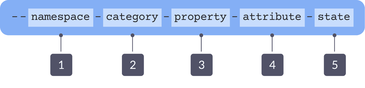 A naming map helps to communicate what the naming structure of each token is and how each token should be used. After meeting with different teams across Salesforce, this is the map we ended up with.